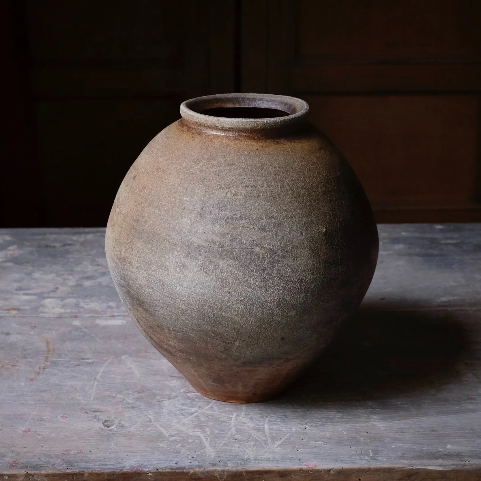 Wood-fired own stoneware blend, hand-built, china clay slips, natural ash glaze. Fired twice for 4 days and 3 nights in my anagama.